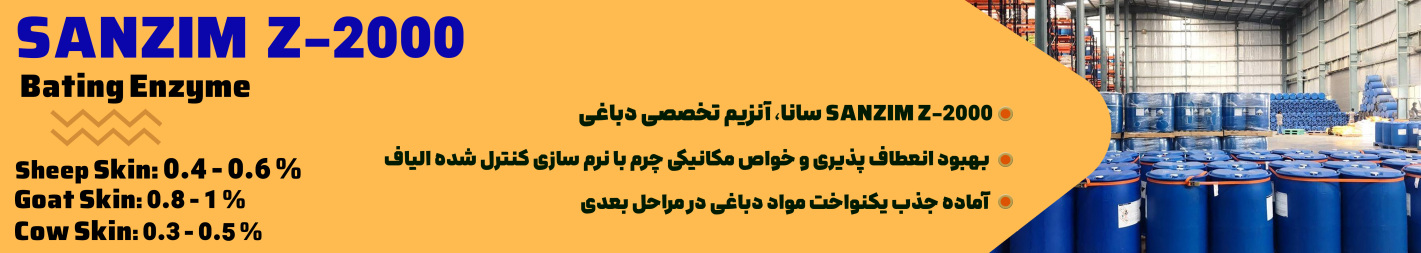 SANZIM Z-2000 آنزیم تخصصی دباغی (اروپون) شرکت سانا (SANA) برای چرمسازان حرفهای SANZIM Z-2000، آنزیم تخصصی دباغی (اروپون) از شرکت سانا (SANA)، راهکاری عملی و حرفهای برای کارخانههای چرمسازی است که به دنبال بهبود خواص فیزیکی چرم و انعطافپذیری بالا هستند. این آنزیم با نرمسازی کنترلشده الیاف پوست، باعث میشود چرمی با کیفیت یکنواخت و آماده جذب مؤثر مواد دباغی تولید شود. همین حالا با کارشناسان سانا تماس بگیرید …